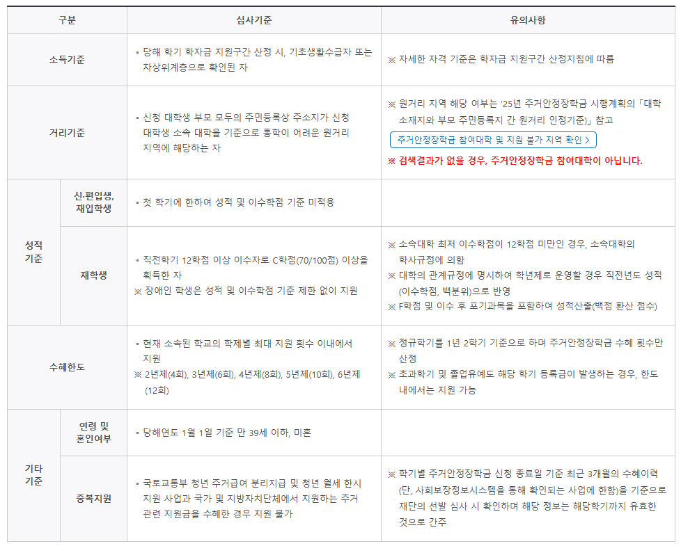 주거안정장학금 참여대학 및 지원불가 지역 확인하여, 대상여부를 꼭 확인해주세요